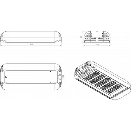 Габаритные размеры светильника, мм 220х95х550