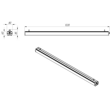 Габаритные размеры светильника, мм 80х1200х60