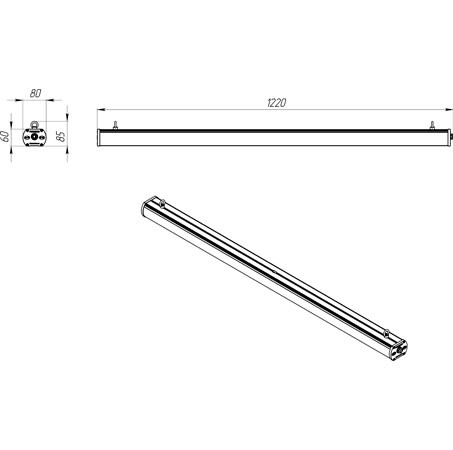 Габаритные размеры светильника, мм 80х1200х60
