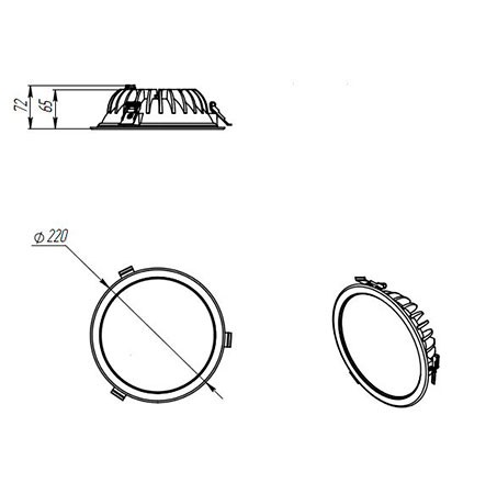 Габаритные размеры светильника, мм Ø220х72 (Øотв=200)