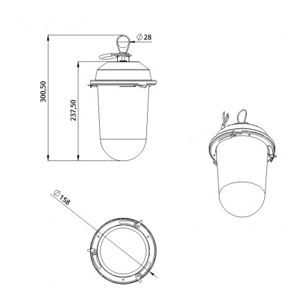 | Габаритные размеры светильника, мм | 300 x Ø158 |
