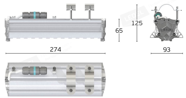 Габаритные размеры светильника, мм 274-774х93х140
