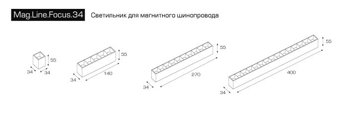 Габаритные размеры светильника, мм 34 x 55 x 400