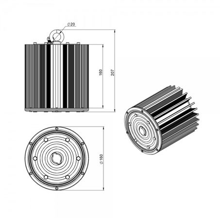 Габаритные размеры светильника, мм Ø160 x 207