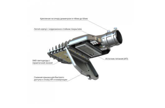- совместимость с различными системами управления (NEMA и Zhaga разъёмы (опционально));