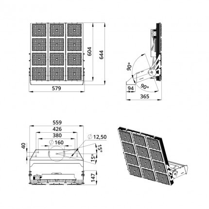 Габаритные размеры светильника, мм 644×579×365