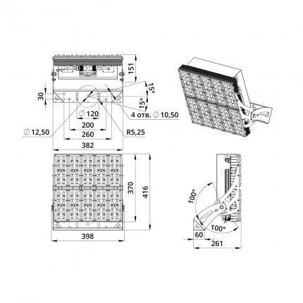 Габаритные размеры светильника, мм 416×398×261