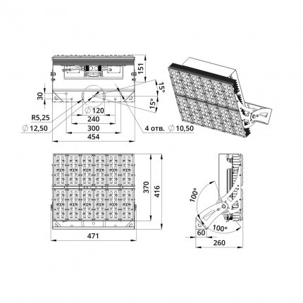 | Габаритные размеры светильника, мм | 471×416×260 |