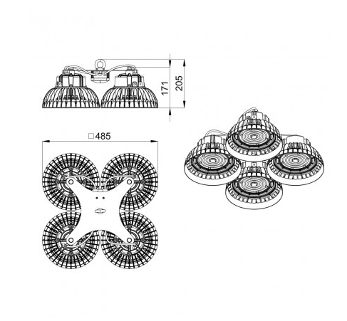 Габаритные размеры светильника, мм 485х485х205