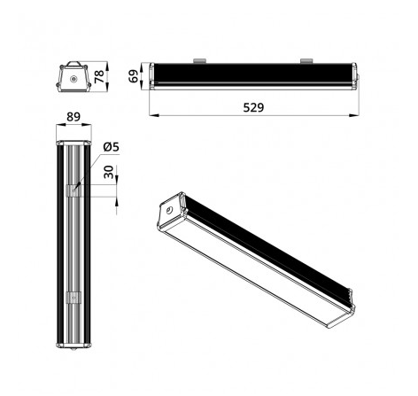Габаритные размеры светильника, мм 529х89х78